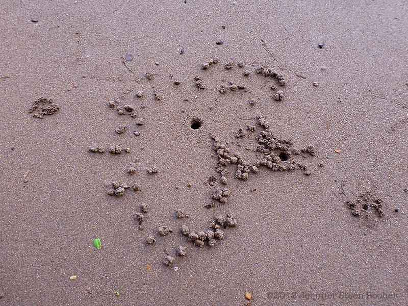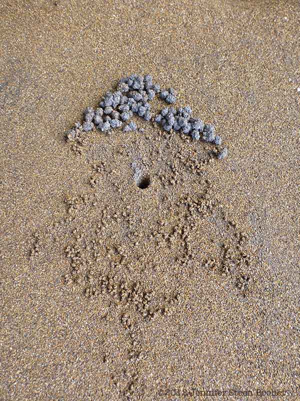 I was fascinated by the patterns they formed with balls of sand. Fortunately, I follow a fascinating blog called “Through the Sand Glass,” where I read about this type of crab behavior just a few months ago. The crab scoops up a bit of sand, eats anything it finds tasty, and then balls up the used sand so it doesn’t sift the same sand twice. Very efficient.