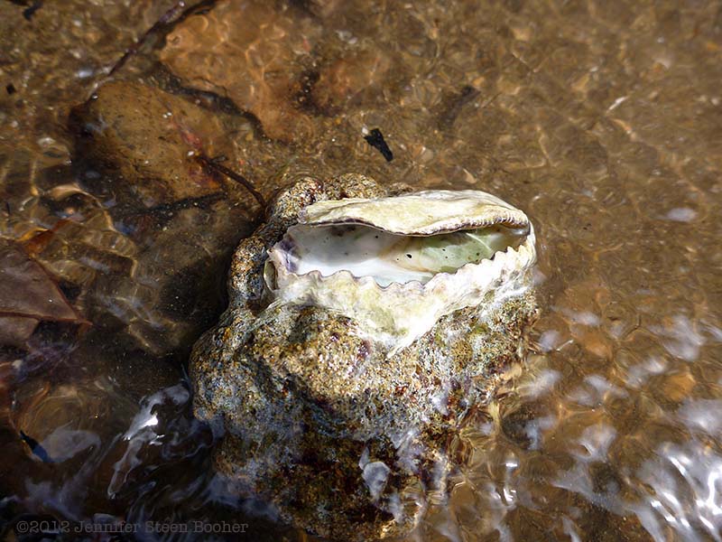 and molluscs that glue themselves rather thoroughly to the rocks (many rocks are completely encrusted with these, like barnacles. They are sharp like barnacles, too. Ow.) There were also small black biting bugs, very like blackflies but neither so plentiful nor so aggressive.