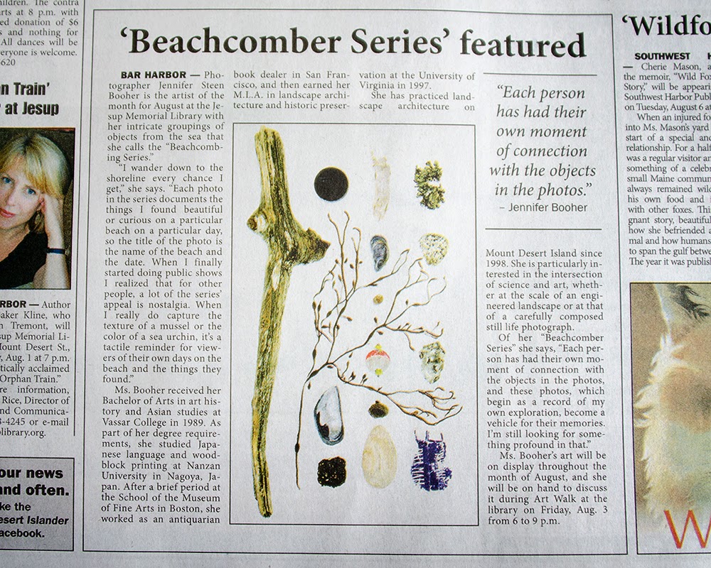 Six of my photos are on display at the Jesup Memorial Library in Bar Harbor for the month of August. There was a very nice article in the Islander this week (the local newspaper) and