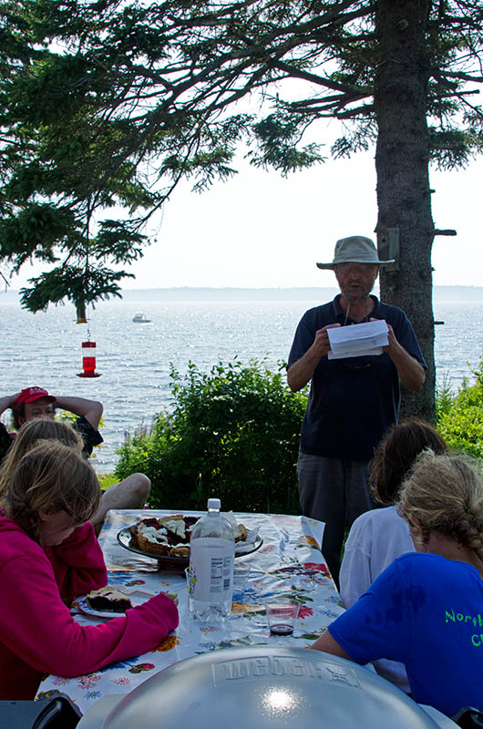 After the parade there’s a huge seafood festival on the town Athletic Fields, but I’ve never gone. We usually have our own lobster festival over at Bob’s camp on Union River Bay. You may remember Bob’s camp, if you’ve been reading for a while. This year the weather was perfect,