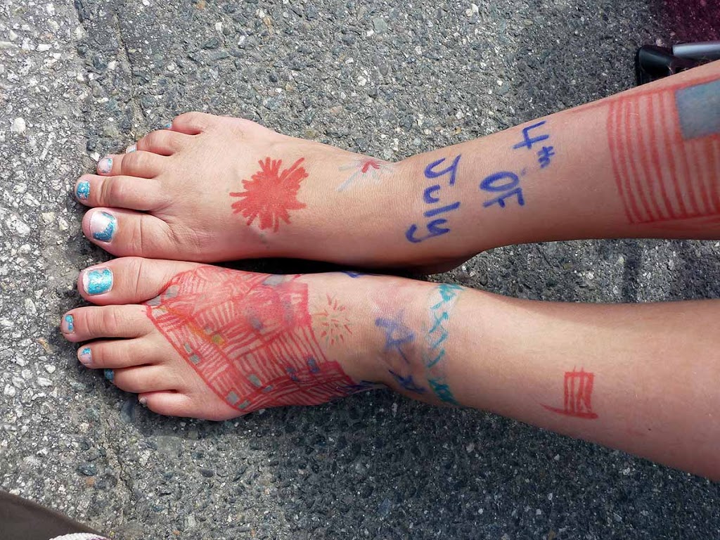 In the evening the Town Band gives a concert in the bandstand on the Village Green, and then there are fireworks. After the fireworks there is a massive traffic jam that lasts til long after midnight, so people who’ve done this before hang out at the ice cream parlors or the bars, depending on their personal preference, and the locals go home and stuff their heads under their pillows trying to drown out the horns of people who think honking will help 5,000 people move their cars faster down the single road out of town. We usually put the younger kids to bed and open a bottle of wine with friends who live outside of town. When the jam clears up, we all tumble into bed, happy to be Americans.