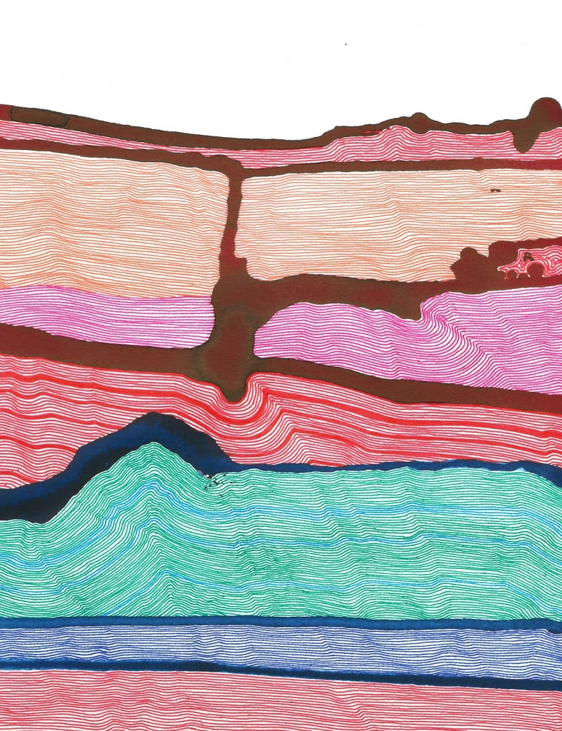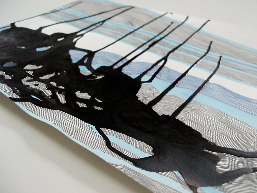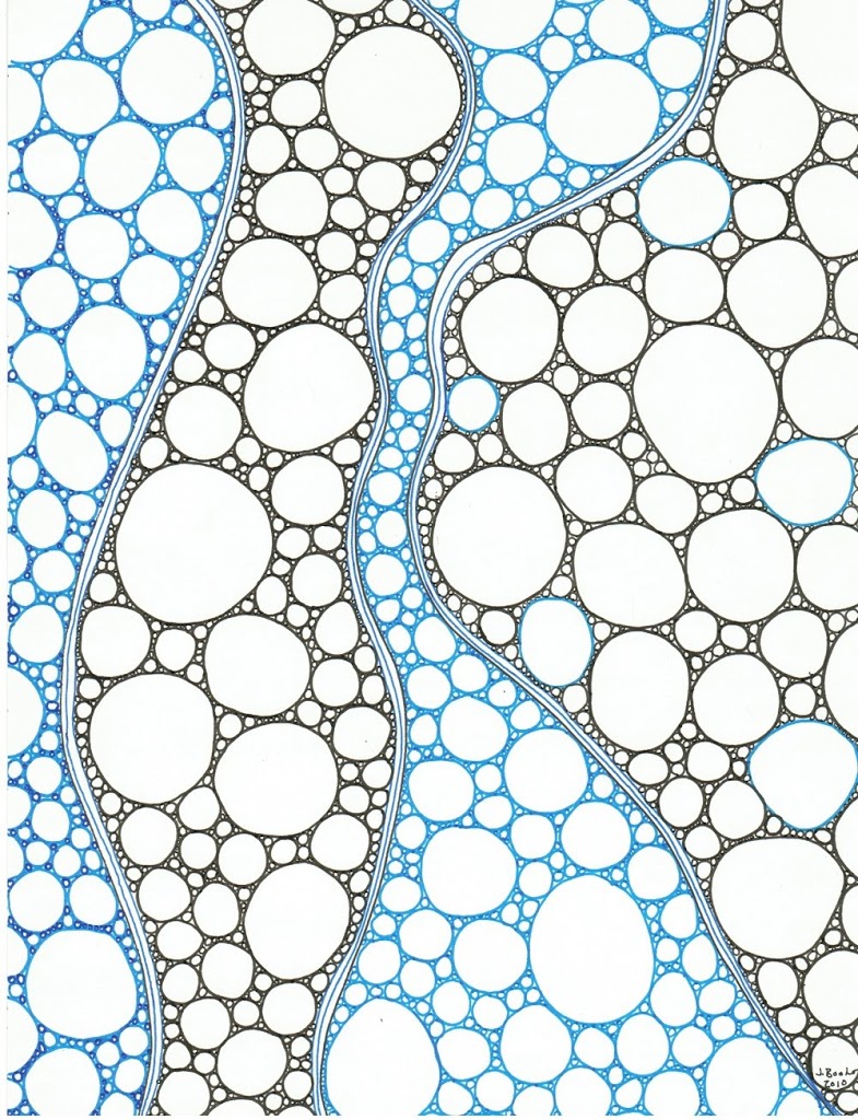 These were ‘about’ geography, cartography, geology, topography … the way landforms are created, built, changed, described, quantified… I get inarticulate when asked to explain. Lately my drawings have turned circular.  I don’t know why. Now the doodles are ‘about’ streaming, flow, ripples, bubbles, cells, small units building up large masses, movement….