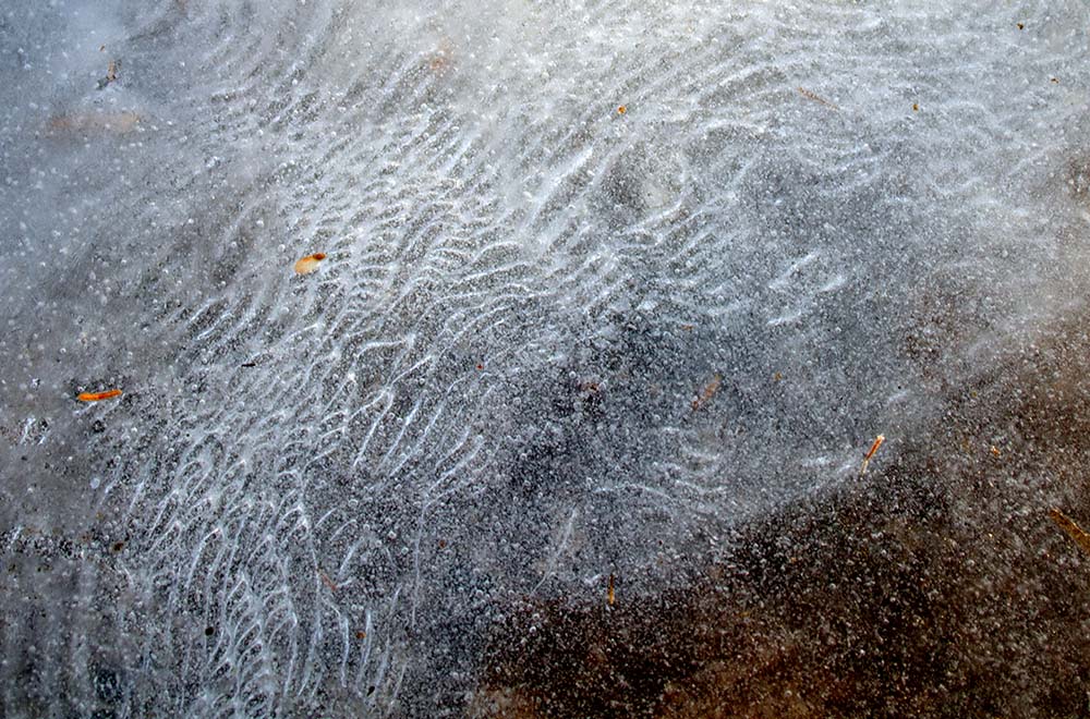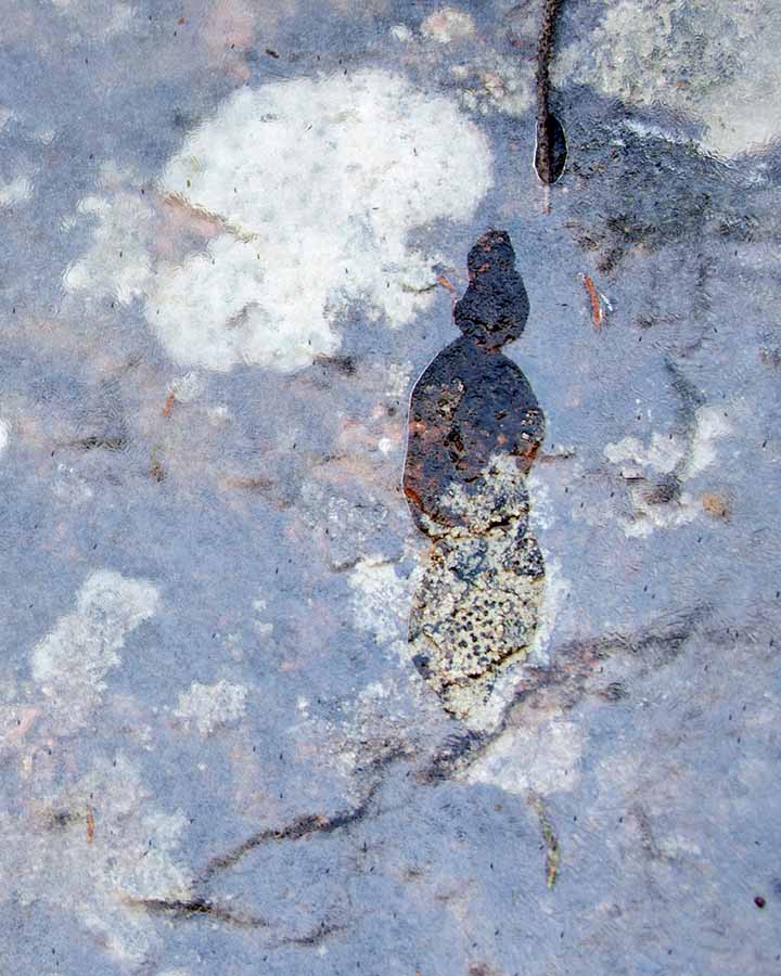 See the patches of lichen under the ice in this one?