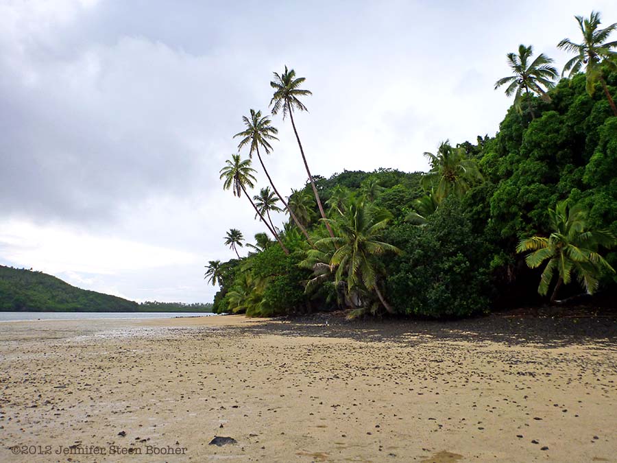 My daughter and I headed back to Waya Island. This time, having learned the difficulty of navigating a strong tide through a deep and narrow channel in a two-person kayak with one adult, I asked George to drop us off in the skiff. Wimpy, but I planned to beachcomb all the way around the island, so I needed to save a little energy.