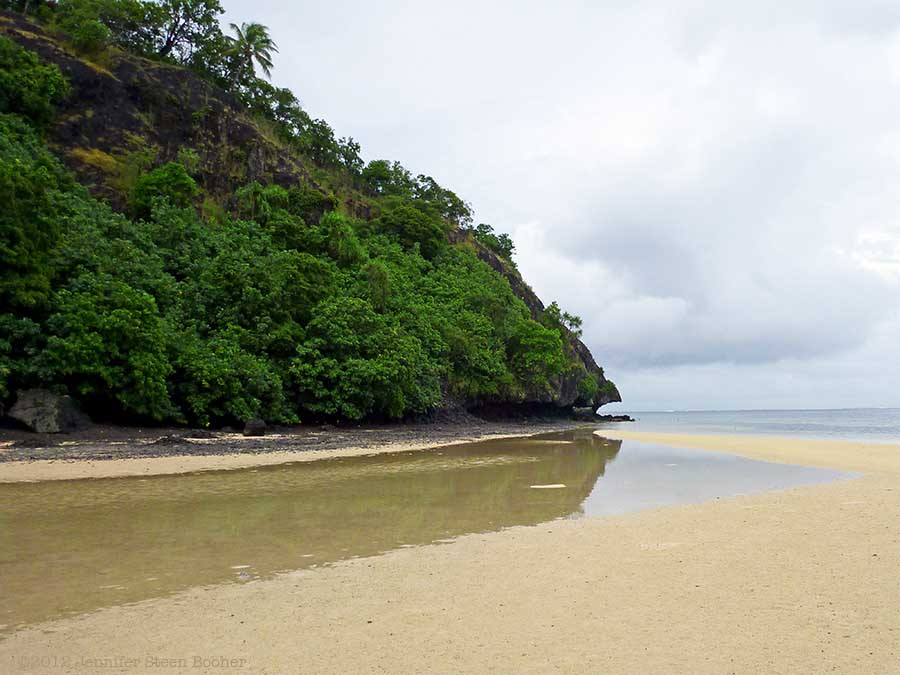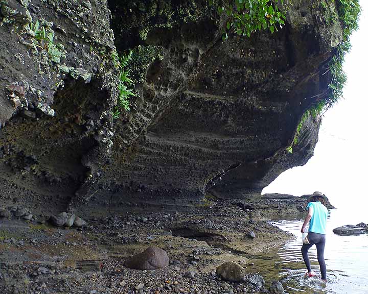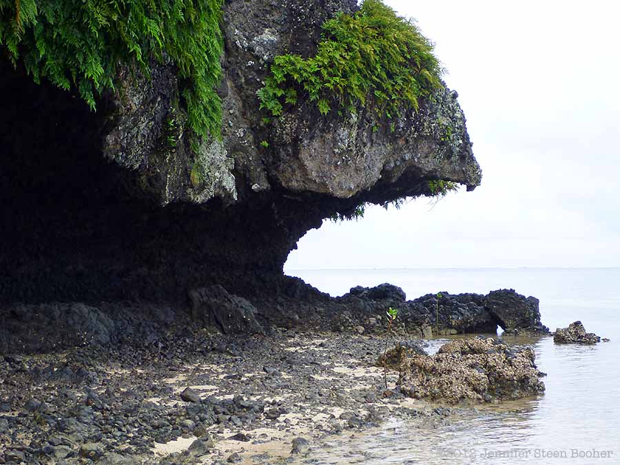 Doesn’t it look like you could just pull one of those stones right out of the mud? It’s more like concrete, though. We actually had to climb over a bit at the other end of the island, and we used these like handholds on a climbing wall. They are quite solid.And yet that muddy-looking matrix must be pretty soft, because the whole coastline is sculpted like this, with the volcanic stone lying loose on the beach. Doesn’t that island look like something Dr. Seuss would have drawn?