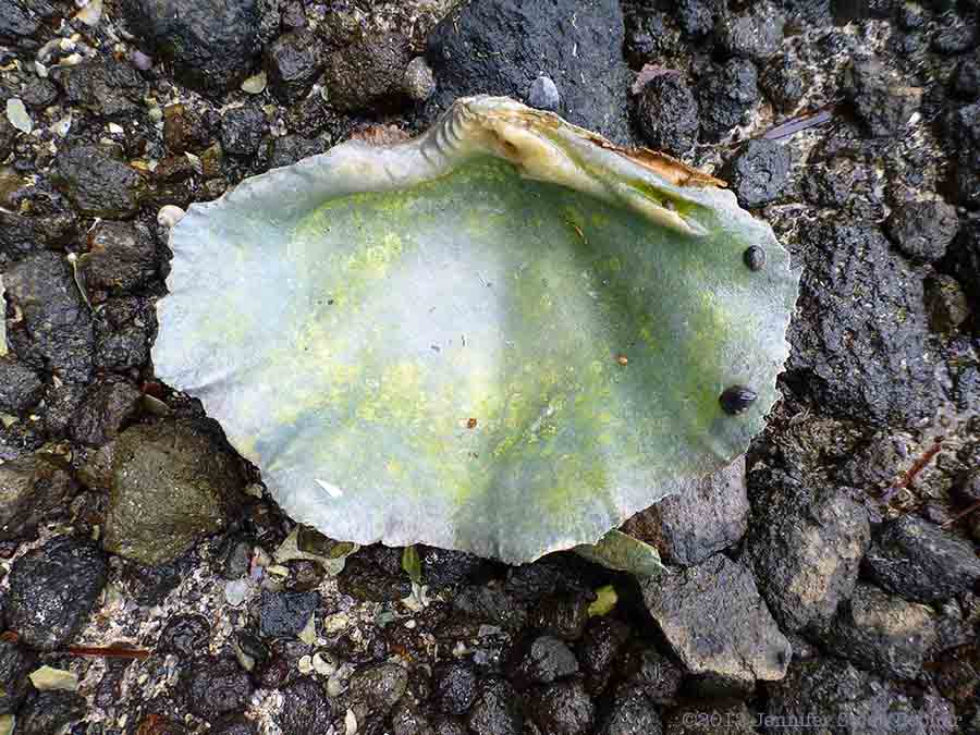 The stars of today’s still life are a (small) Fluted Giant Clam (Tridacna squamosa) and some sort of Spider Conch (Lambis spp.) There were lots of the clams in our area, and their lips have the most psychedelic patterns: