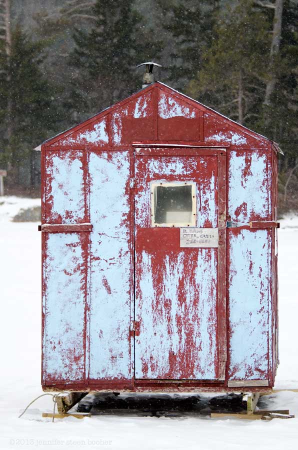 More than one fishing Shack has been a welcomed respite from a strong northwesterly wind during a ski or skate across the great lake. Through your images, I found myself taken back to warming up out of the wind after crossing where Gulls sit in the summer. Each fishing shack represents the Maine character. Thanks Jennifer
