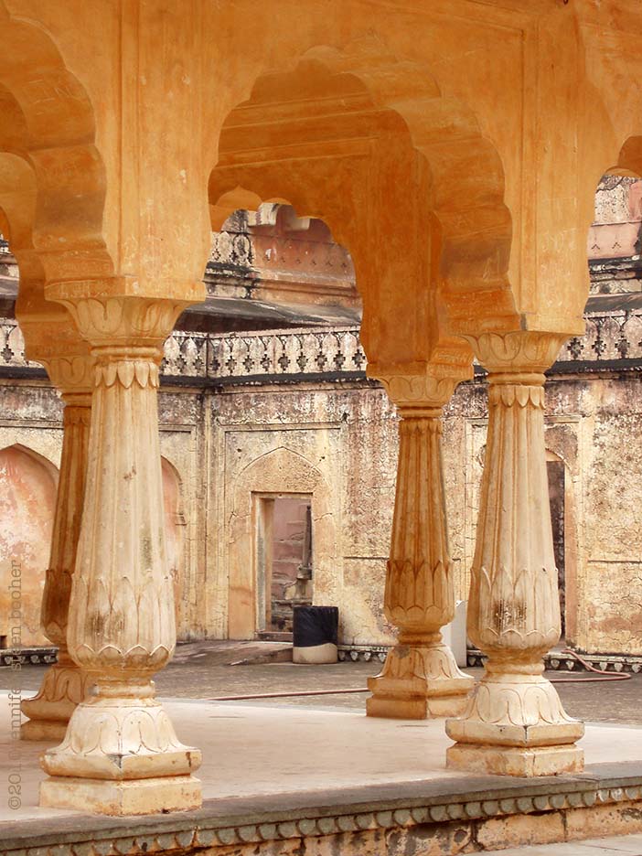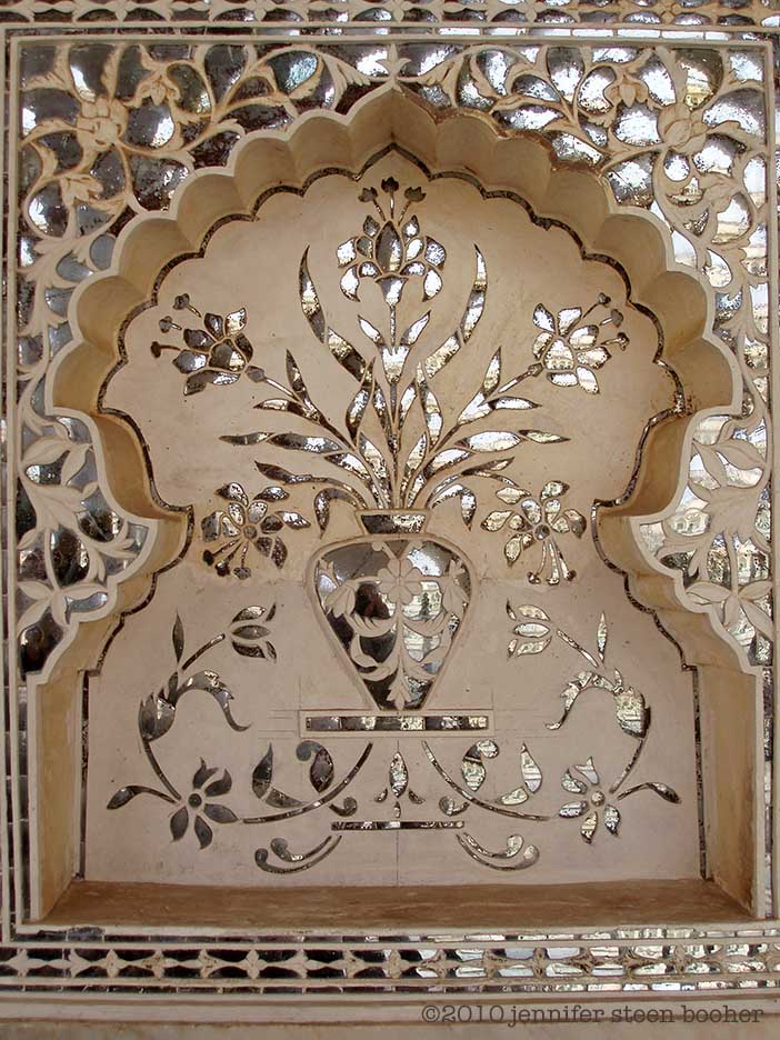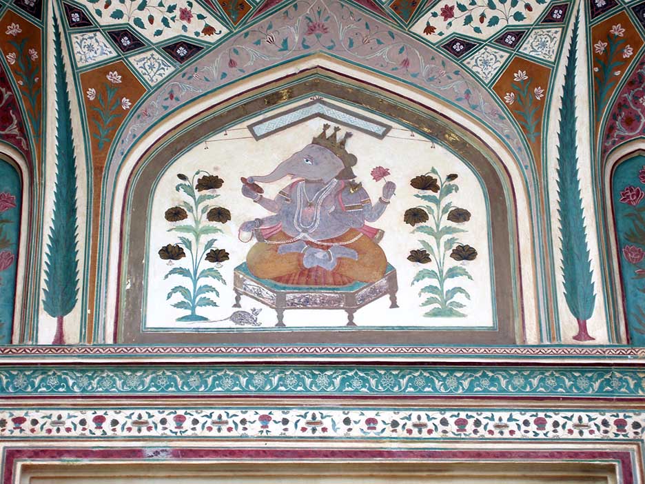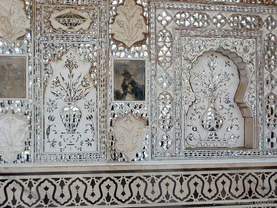 Up the stairs through the Lion Gate, turn right and go through the Ganesh Gate, then turn left and head for the Hall of Mirrors.