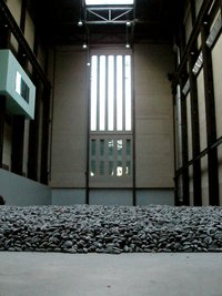 Yesterday Ellie and I went to the Tate Modern. This is Ai Weiwei’s installation in the Turbine Hall. You may have seen photos of this floating around the Internet. Millions of sunflower seeds – made of porcelain, hand painted – are neatly piled on the floor. You used to be able to walk on them and pick them up, but apparently it produced a lot of dust (bad for the lungs) and you can only look now. Here is another photo showing the scale of the installation:
