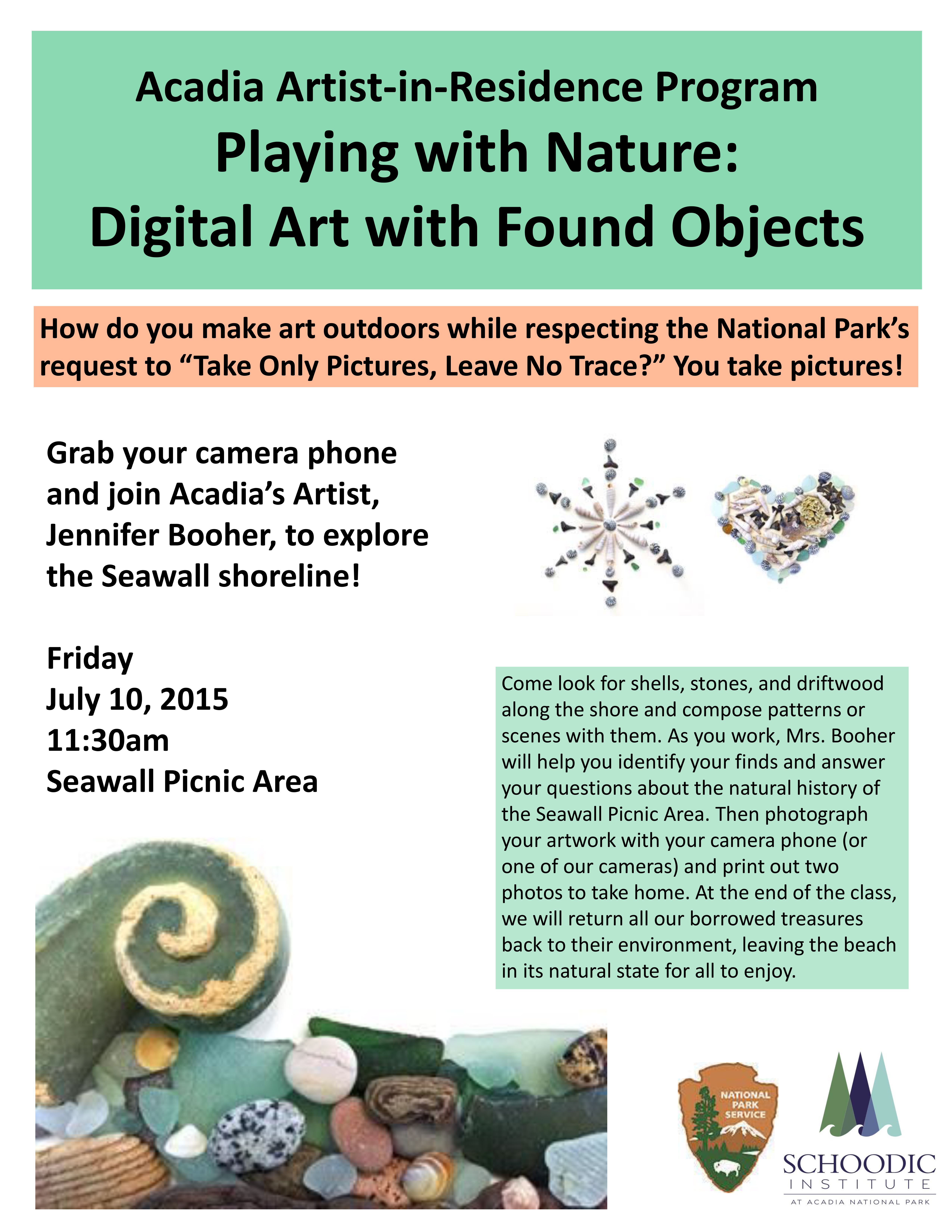 August 20, 8:30-10:30 am: “Playing with Nature” outdoors at the Fabbri Memorial Picnic Area, Acadia National Park. (I’m a 2015 Artist-in-Residence.) Info will be posted here: http://www.nps.gov/acad/planyourvisit/calendar.htm