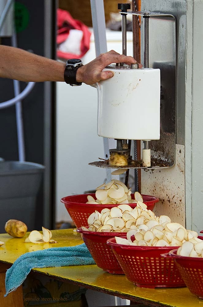 Next I went looking for lunch and ended up mesmerized by the potato-chip-makers: