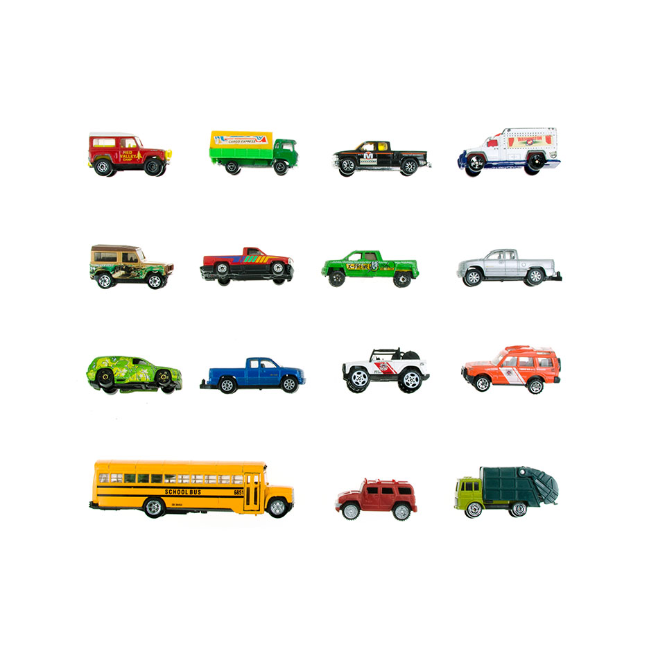 I think I’ve mentioned the wall of boxes that lines my studio. Well, lately it’s been overflowing, so I’m going through all the boxes and trying to be ruthless with the contents. I had one large box labeled “Firetrucks.” You can see the results above. Here are the first photos from the box labeled “Cars and Trucks.”
