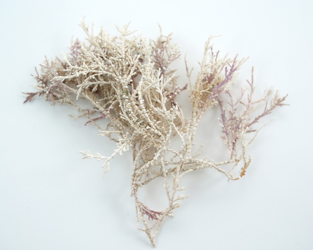 There are two kinds of coralline that I see on my local beachs. Most often it is a thick crust on crab shells and rocks. This is the more plant-like form. Don’t those segmented stems look like spinal columns? I find I look at it differently now that I know what it is.