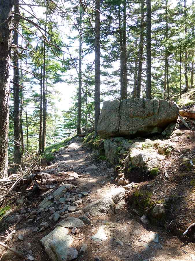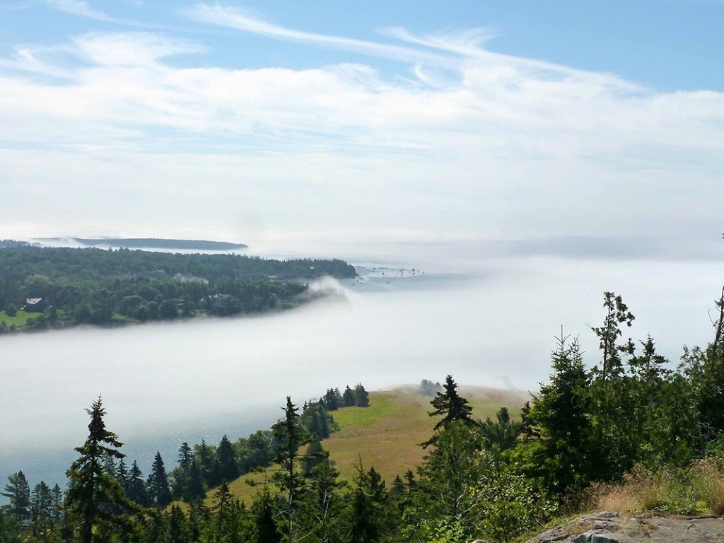 It was a beautiful sunny day on the mountain, but the fog was moving in through the mouth of Somes Sound far below. Can you see the way it swamps the little point of land at the center, almost like a big wave?