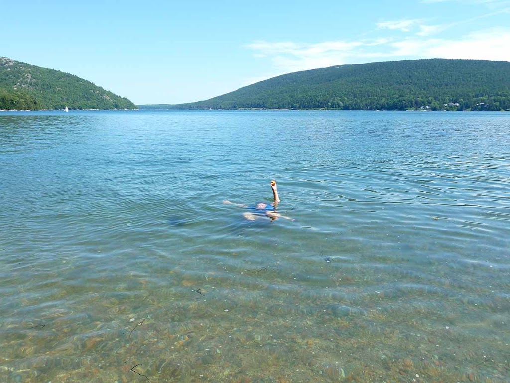 When you get down the other side of the moutain, there is a lovely cove. The water was pretty darn cold, as usual. This is one of the girls trying to swim without getting salt water on her peach. I had about five minutes for beachcombing while we prodded the kids to dry off and get their shoes on. Looking forward to school starting for them, and longer beachcombing sessions for me!